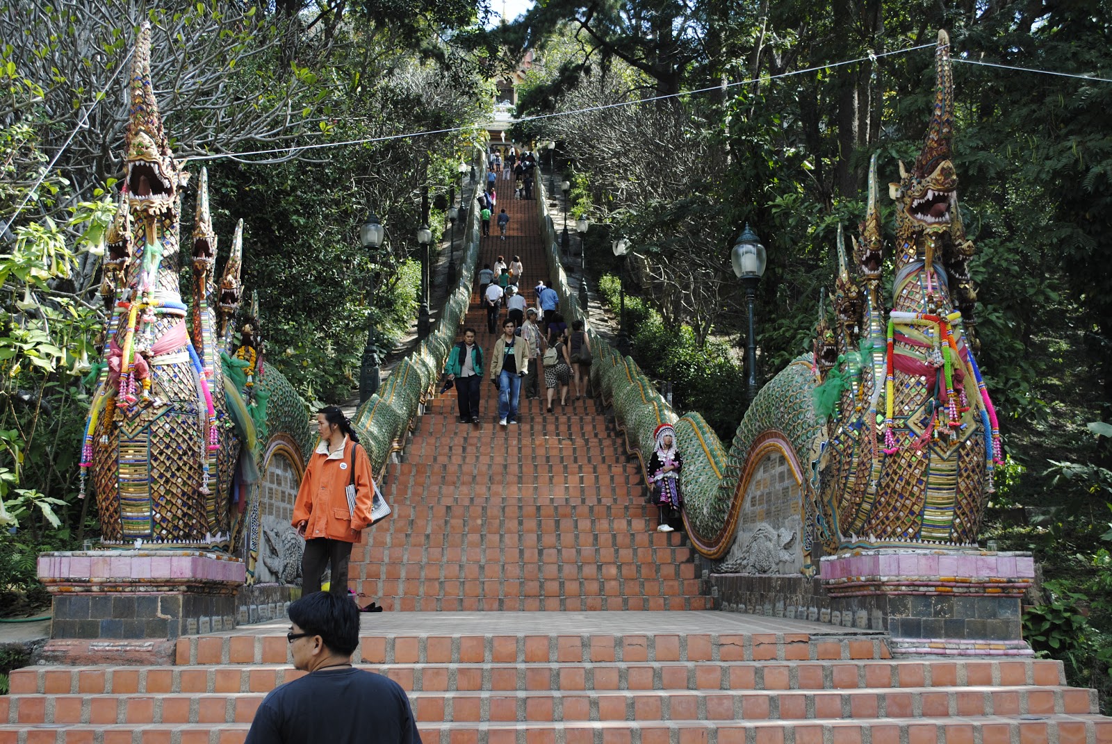 จากทางขึ้นซึ่งเราตรงมาจากถนนห้วยแก้ว ในการเดินทางจนถึงวัดพระธาตุดอยสุเทพด้วยระยะทางอันคดเคี้ยวโดยประมาณ 13 กิโลเมตร