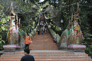 หน้าบันไดทางขึ้น เป็นบันไดนาคคู่ ตามที่ทราบมีชั้นบันไดโดยประมาณ 300 ขั้น แต่ทุกครั้งที่ไปเริ่มเดินขึ้นก็เริ่มนับ ด้วยอาการเหนื่อยกว่าจะถึงพระธาตุลืมทุกทีสิน่า เพราะการเที่ยวแต่ละครั้งจะต้องกระเตงลูกไปด้วย