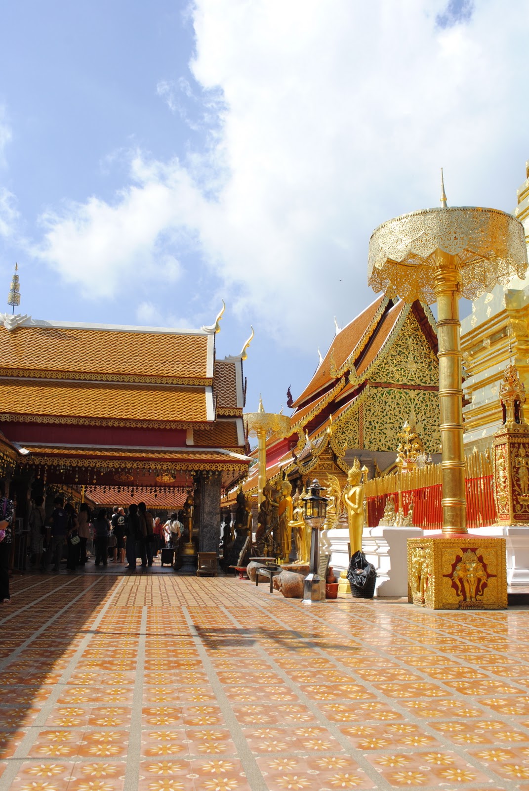 บริเวณโดยรอบข้างพระธาตุดอยสุเทพ โดยผู้คนที่ขึ้นไปสักการะกราบไหว้ขอพร จะทำการเดินรอบพระธาตุก่อน 3 รอบ และหลายต่อหลายคนนิยมซื้อระฆังมาแขวงเพื่อขอพร