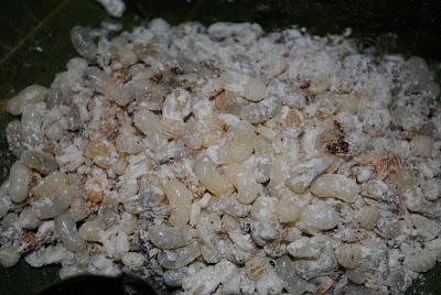 ไข่แมงดา  อันนี้สิอร่อยและหายาก ต้องบอกก่อนว่ามันอยู่ตามไฮนาหรือหนองนำ้ และอยู่เหนือนำ้นิดหน่อย แต่นี่เป็นเพียงการจัดฉากถ่ายรูปมันเลยดูเหมือนว่าอยู่บนต้นไม้