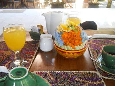 โต๊ะอาหาร จะมีดอกไม้ประดับ และจัดได้เป็นเอกลักษณ์ มองแล้วรู้เลยว่าที่นี่บาหลี