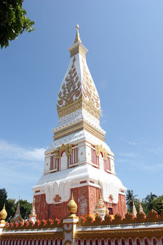 พระธาตุพนม เป็นปูชนียสถานศักดิ์สิทธิ์ของภาคอีสาน ประดิษฐานบนเนินที่เรียกว่าภูกำพร้า ปัจจุบันเป็นบริเวณวัดพระธาตุพนมวรมหาวิหาร อยู่ห่างจากตัวเมืองนครพนมราว 52 กิโลเมตร พระธาตุพนมสร้างขึ้นแต่สมัยอาณาจักรศรีโคตรบูรณ์ ประมาณ พ.ศ. 8 โดยเจ้าเมือง 5 องค์คือ พระยาสุวรรณภิงคารนะ พระยาคำแดง พระยาอินทปัตถะนคร พระยาจุลนีพรหมทัต และพระยานันทเสน เพื่อบรรจุพระอุงรังคธาตุ (กระดูกส่วนหน้าอก) ของพระพุทธเจ้า ลักษณะพระเจดีย์เป็นเจดีย์ทรงบัวเหลี่ยม หรือทรงแจกัน ก่อด้วยอิฐมีลวดลายจำหลักลงไปในแผ่นอิฐ มีซุ้มคั่นด้านละซุ้ม ซ้อมกัน 3 ชั้น ลดหลั่นกันลงมาอย่างวิจิตร พระธาตุพนมได้รับการบูรณะเรื่อยมาตามกาลเวลา และในวันที่ 11 สิงหาคม 2518 องค์พระธาตุพนมได้หักโค่นลง ประชาชนชาวไทยทั่วทั้งประเทศได้ร่วมกันสละทุนทรัพย์ก่อสร้างขึ้นใหม่ และมีพิธีอัญเชิญพระบรมสารีริกธาตุขึ้นบรรจุอีกครั้งในวันที่ 23 มีนาคม 2522