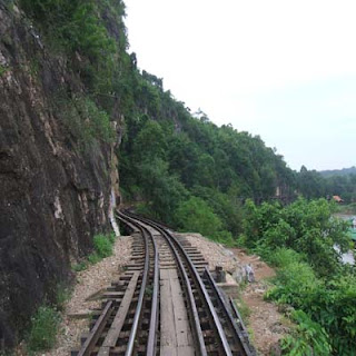 ทางรถไฟสายมรณะหรือ ทางรถไฟสายพม่า ทางรถไฟสายนี้เริ่มต้นจากสถานีชุมทางหนองปลาดุก อำเภอบ้านโป่ง จังหวัดราชบุรี ผ่านจังหวัดกาญจนบุรีข้ามแม่น้ำแควใหญ่ โดยสะพานข้ามแม่น้ำแคว ไปทางทิศตะวันตกจนถึงด่านเจดีย์สามองค์ เพื่อให้ถึงปลายทางที่เมืองทันบูซายัด ประเทศพม่าทาง รถไฟสายมรณะมีความยาวจากหนองปลาดุกถึงสถานีทันบูซายัดรวม 415 กิโลเมตร เป็นทางรถไฟอยู่ในเขตประเทศไทยประมาณ 303.95 กิโลเมตร และอยู่ในเขตพม่า 111.05 กิโลเมตร มีสถานีจำนวน 37 สถานี ทางรถไฟสายนี้สร้างขึ้นในช่วงสงครามโลกครั้งที่ 2 โดยใช้แรงงานเชลยศึกฝ่ายสัมพันธมิตรและกรรมกรชาวเอเชียที่กองทัพญี่ปุ่นเกณฑ์มาสร้าง เพื่อใช้เป็นเส้นทางยุทธศาสตร์ผ่านประเทศพม่า ปัจจุบันเส้นทางนี้ไปสุดปลายทางที่บ้านท่าเสาหรือสถานีน้ำตก ระยะทางจากสถานีกาญจนบุรีถึงสถานีน้ำตกเป็นระยะทางประมาณ 77 กิโลเมตร การรถไฟแห่งประเทศไทยเปิด เดินรถบนเส้นทางนี้ทุกวันและจัดรถไฟขบวนพิเศษสายกรุงเทพฯ - น้ำตก ทุกวันเสาร์ อาทิตย์ และวันหยุดราชการ จุดที่นักท่องเที่ยวให้ความสนใจมากคือช่วงสะพานข้ามแม่น้ำแคว และช่วงโค้งมรณะหรือถ้ำกระแซ ซึ่งเป็นสะพานโค้งเลียบแม่น้ำแควน้อยยาวประมาณ 400 เมตร